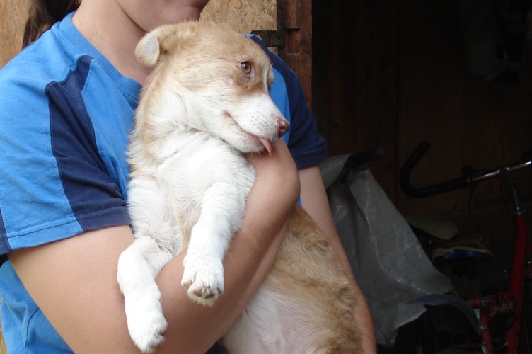 Das ist Lisa, sie hatte im April 2013 einen schlimmen Autounfall, beide Beine waren kaputt. Inzwischen kann sie schon ein paar Schritte laufen. Es wird wohl noch etwas dauern bis sie sich ganz erholt hat, aber auch sie sucht ein Zuhause.