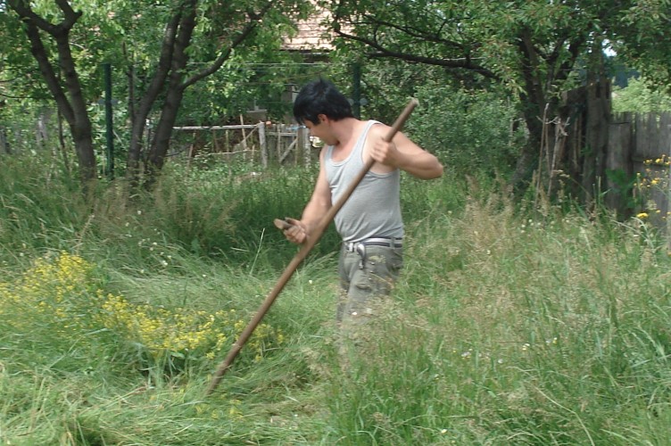 Radu, der Mann für alle Fälle, schwang die Sense, um Silvia ein Schattenplätzchen zu ermöglichen.