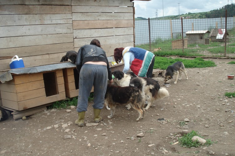 Die Arbeitsbedingungen sind schlecht, trotzdem tun alle ihr möglichstes. Auf dem Gelände hier gibt es zum Beispiel kein Wasser, nicht mal einen Brunnen. Für die Helfer heißt das, daß sie aus dem nächsten Ort vom - ich nenn es mal "Hundehof" - das Wasser aus dem Brunnen holen und auf den Platz in Gilau bringen müssen.