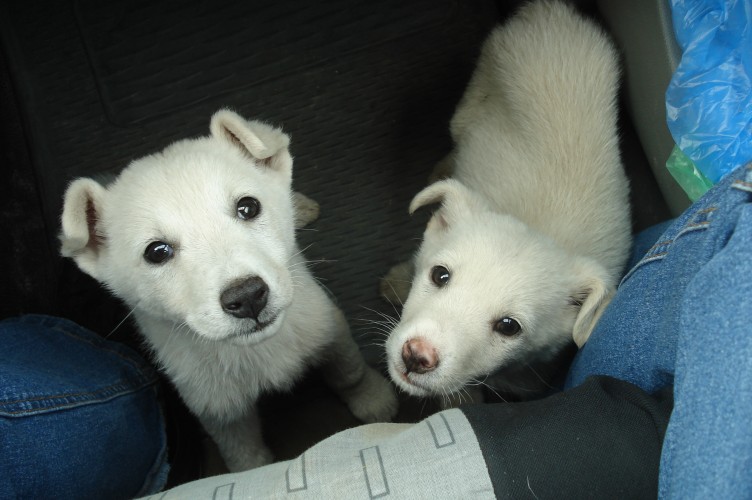 Um sicher zu gehn gingen wir gleich noch Welpenfutter kaufen, denn das ist leider oft Mangelware.(Update: Adam (rechts) konnte in Deutschland ein Zuhause finden, Eva hat es leider nicht geschafft, sie war zu schwach und starb einige Tage nachdem wir sie gefunden hatten.)