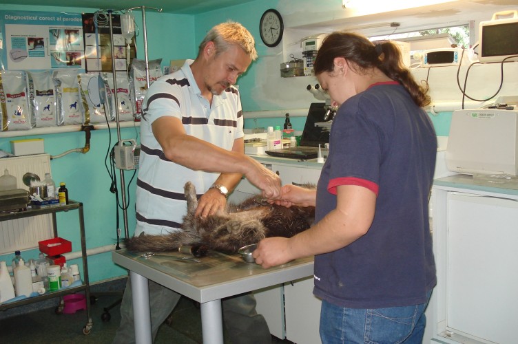 Dr. Madaras, der Tierarzt behandelt auch hin und wieder mal einen Hund umsonst, da er von Arca lui Noe manchmal Medikamente, Verbandszeug oder OP-Material bekommt, das Arca lui Noe nicht selbst vor Ort braucht.