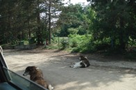 Schon auf dem Weg zur Einfahrt begegnet man einigen der dort frei lebenden Hunde. Sie sind irgenwann einfach gekommen, auf der Suche nach Futter - und sind geblieben...
